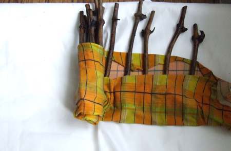 6. Подготовленные черенки нужно обернуть влажной тканью, нижнюю часть поместить в пластиковый пакет и зафиксировать его так, чтобы влага сохранялась в зоне образования корней на ветоши и не испарялась. Край пакета можно зафиксировать резинкой или проволокой. На верхнюю часть черенков также придется надеть пластиковый пакет и положить в него влажную тряпочку. Но этот пакет следует приоткрыть, чтобы был доступ воздуха к верхней части черенков.